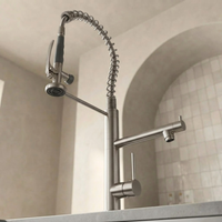 Opanuj swoje kuchenne zadania dzięki temu kranowi z wiosenną szyjką w standardzie komercyjnym, łączącemu przemysłową trwałość z nowoczesną elastycznością. Jego podwójny uchwyt i chowany spryskiwacz oferują doskonałą kontrolę dla efektywnego czyszczenia i napełniania.
